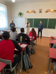 28 січня викладачі кафедри «Іноземні мови» Гладких Ганна Валеріївна та Коваль Ольга Юріївна разом з доцентом кафедри ЕТТП Попрядухіним Вадимом Сергійовичем провели профорієнтаційну роботу у Мирненському опорному закладі загальної середньої освіти І-ІІІ ступенів «Інтелект» Мирненської селищної ради. Представники ТДАТУ надали учням інформацію про факультети та спеціальності, перелік предметів ЗНО до вступу на кожну спеціальність університету, організацію дозвілля студентів, навчання на військовій кафедрі, перспективи працевлаштування. Особливо зацікавила учнів інформація про організацію практик студентів за кордоном під час навчання в університеті.