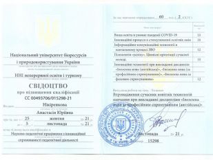 Вже традиційними для співробітників нашого університету стало проходження курсів підвищення кваліфікації на базі НУБіП. У зв’язку з карантинними обмеженнями з 25.10.2021 по 5.11.2021 підвищення кваліфікації відбулося у режимі онлайн. Програма підвищення кваліфікації «Інноваційна спрямованість педагогічної діяльності» включала вивчення проблем вищої освіти в умовах пандемії, інноваційних процесів у стимулюванні освітніх змін тощо. Особливу увагу було приділено нагальним питанням використання інноваційних технологій при викладанні дисциплін «Іноземна мова за професійним спрямуванням», «Іноземна мова для академічних цілей», «Іноземна мова зі спеціальності дослідження».