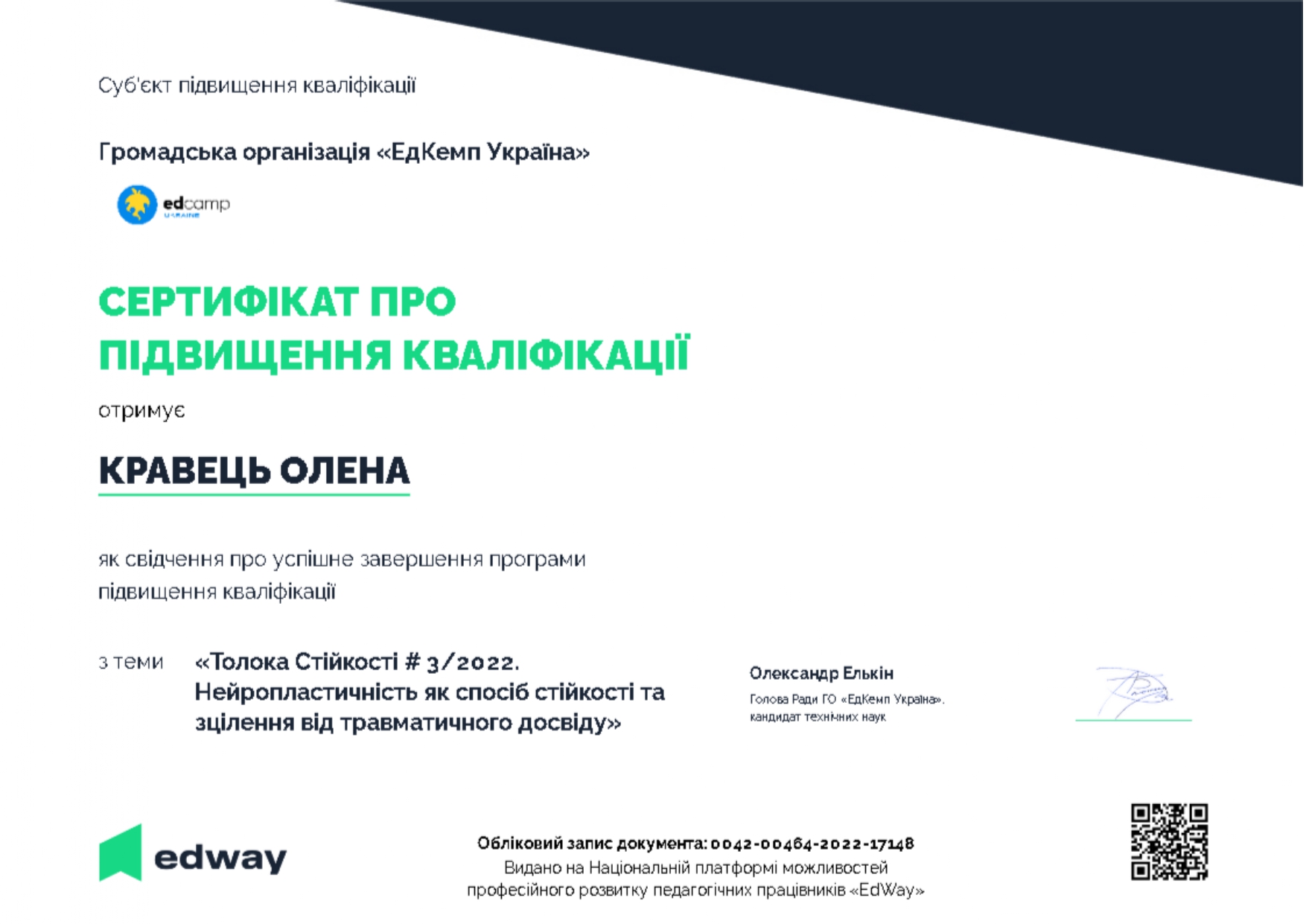Сертифікат про підвищення кваліфікації – Кравець Олена_page-0001