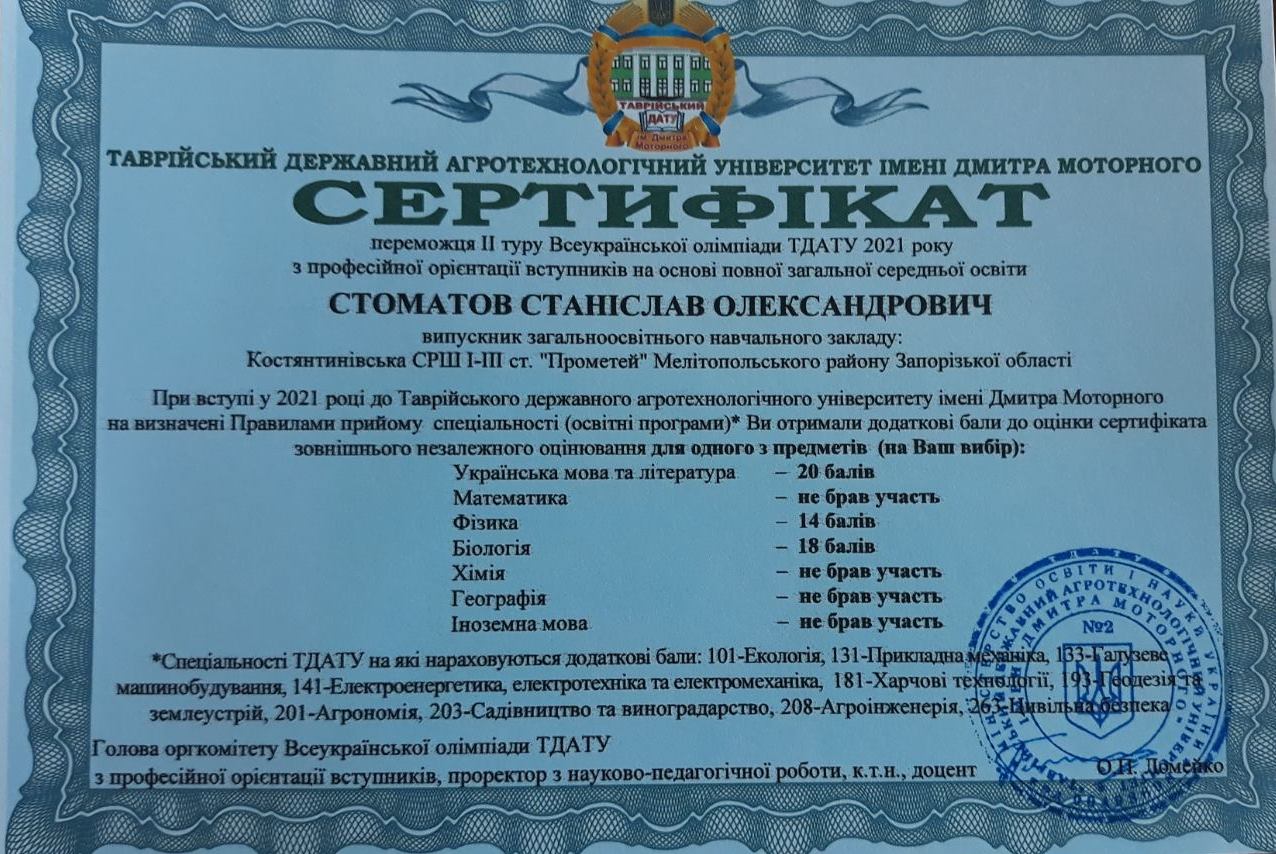 Сертифікат Стоматова Стаса