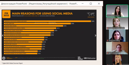 Учасники ознайомились із особливостями налаштування таргетованої реклами у соціальних мережах як інструмента взаємодії із цільовою аудиторією, розглянли розкрито принципи ефективного налаштування реклами, аналіз цільової аудиторії та оптимізацію кампаній у Facebook, Instagram та інших платформах. Обгооворили також питання репутаційного маркетингу у цифрову епоху, я саме те, яким чином соцмережі впливають на формування довіри до брендів та організацій.