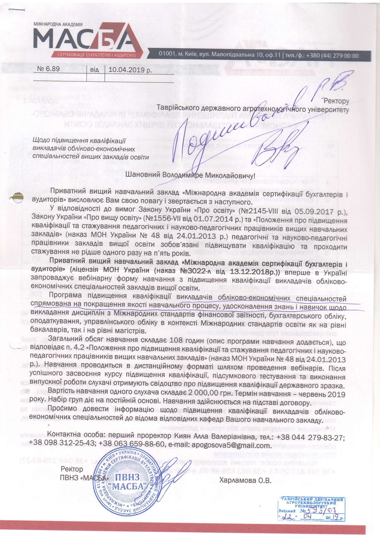 ПВНЗ “Міжнародна академія сертифікації бухгалтерів і аудиторів” запрошує на курси підвищення кваліфікації 15.04.2019