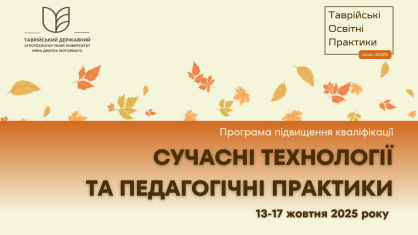 У Таврійському державному агротехнологічному університеті імені Дмитра Моторного підійшла до завершення освітня програма підвищення кваліфікації «ТОП-Осінь-2025» на тему «Сучасні технології та педагогічні практики», що проходила з 13 по 17 жовтня 2025 року. Програма була присвячена інтеграції інноваційних освітніх технологій та розвитку екологічної свідомості у сучасній школі.