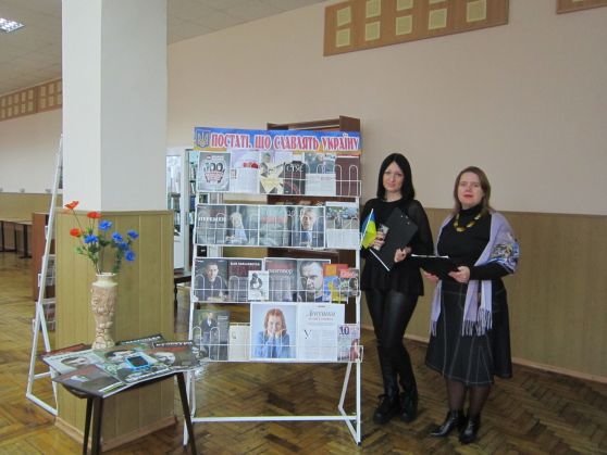До заходу була підготовлена тематична виставка «Постаті, що славлять Україну», де були представлені документальні, періодичні видання та фотоматеріали: С. Жадан «Вогнепальні й ножові», О. Сенцов «Купите книгу – она смешная», Л. Костенко «Вибране», К. Скрябін «Я, «Победа» і Берлін, «Метаморфози. 10 українських поетів останніх десяти років», укладач С. Жадан та ін. У періодичних виданнях «Українська культура», «Світогляд», «Країна», «Новое время» висвітлювалися питання: «Победить недоверие», «История с Иосифом Зисельсом», «Год перемен», «Девушка и миллионы», «Берегиня української пісні» та ін.