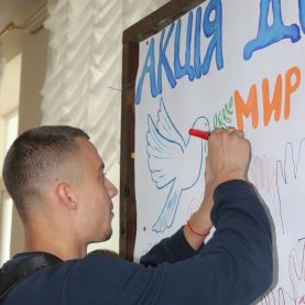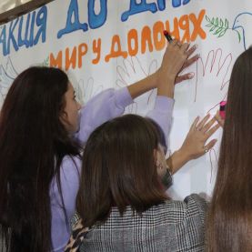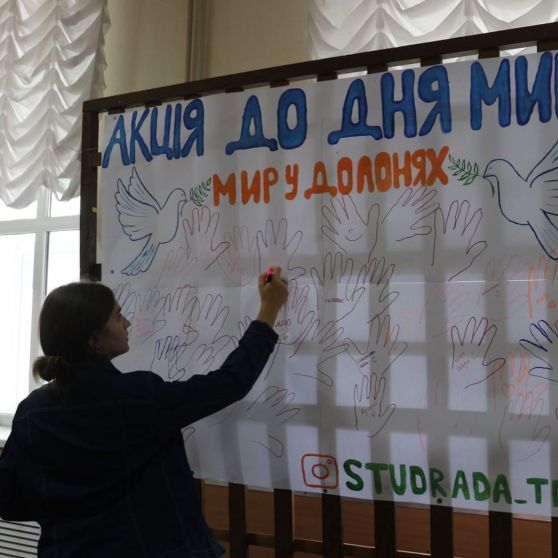 Студрада ТДАТУ провела акцію «Мир у долонях». Усі бажаючі підходили, аби залишити слід своєї долоні та побажання.