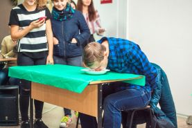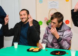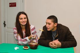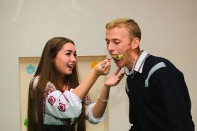 Наступний конкурс був для справжніх екстрималів та любителів гостренького. Умови такі: якнайшвидше з’їсти червоний перець. Ні, ні, не подумайте, що організатори вирішили познущатися над студентами. Учасникам ще дали пампушки та молоко, щоб заїдати та запивати. Конкурс пройшов добре, ніхто зі студентів не постраждав)