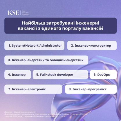 🔹 Найбільший попит на комп’ютерних та електричних інженерів.