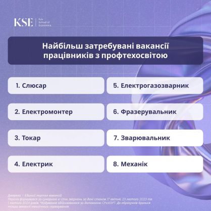 🔹 Серед робітників з профтехосвітою найбільше шукають слюсарів, електромонтерів, електриків, техніків та операторів котелень.