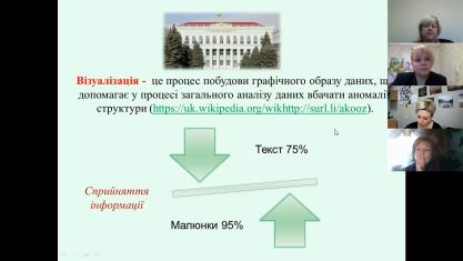 Під час семінару «Візуалізація даних в сучасному просторі» розглядались питання, які стосуються візуалізації даних за допомогою Google презентацій, що суттєво розширює кордони під час роботи з графічними об’єктами в дистанційному режимі.