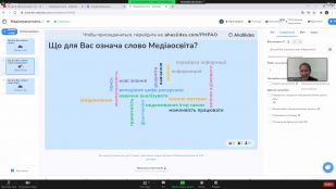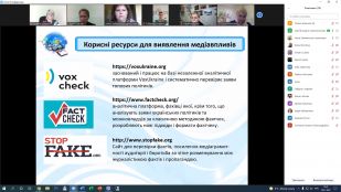 Під час презентації-тренінгу «Інфомедійна грамотність та розвиток критичного мислення: візуальне сприйняття» спікер актуалізував слухачів у напрямку таких питань: значення інфомедійної грамотності та медіаосвіти, методи впливу на аудиторію, види фейків та засоби їх виявлення, корисні ресурси з медіаграмотності.