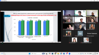Ключовою темою зустрічі став ґрунтовний розгляд процедури анкетного опитування здобувачів та випускників щодо рівня задоволеності навчальним процесом, якістю викладання та освітніх програм. Зібрані дані слугують основою для подальшого аналізу, стратегічного прийняття рішень, удосконалення підходів і впровадження необхідних змін для підвищення ефективності освітньої діяльності.