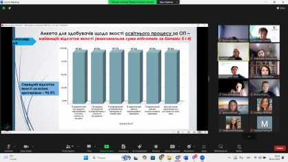 Ключовою темою зустрічі став ґрунтовний розгляд процедури анкетного опитування здобувачів та випускників щодо рівня задоволеності навчальним процесом, якістю викладання та освітніх програм. Зібрані дані слугують основою для подальшого аналізу, стратегічного прийняття рішень, удосконалення підходів і впровадження необхідних змін для підвищення ефективності освітньої діяльності.