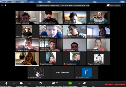 29 квітня, була проведена кураторська година у 12 МБ АІ групі з використанням платформи ZOOM (куратор професор Анатолій Панченко). Участь у кураторській годині взяв заступник декана механіко-технологічного факультету доцент В’ячеслав Мітін. Він ознайомив студентів з особливостями дистанційного навчання та складання літньої екзаменаційної сесії.