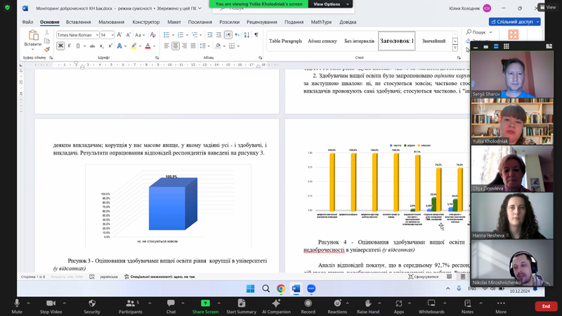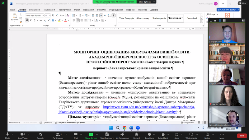 Про результати моніторингу доповіла гарант освітньої програми, кандидат технічних наук, доцент Юлія Холодняк. Вона наголосила, що анонімне електронне опитування проводилось за допомогою університетської платформи і охоплювало ключові аспекти задоволеності здобувачів.