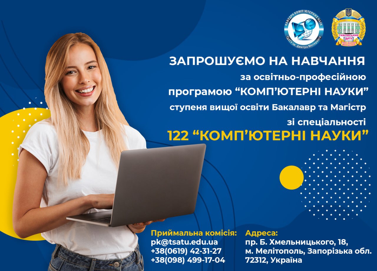 Кафедра “Комп’ютерні науки” запрошує на навчання зі спеціальності 122 “Комп’ютерні науки” у 2021 році 4.03.2021