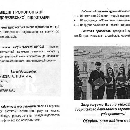 Набір на підготовчі курси в ТДАТУ