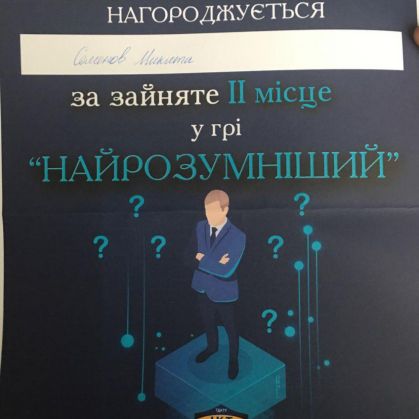 24 квітня під час кураторської години студенти факультету «Інженерії та комп’ютерних технологій» провели інтелектуальну гру «Найрозумніший» між факультетами ТДАТУ. Студент Семенов Микита 11 КН групи зайняв друге місце.