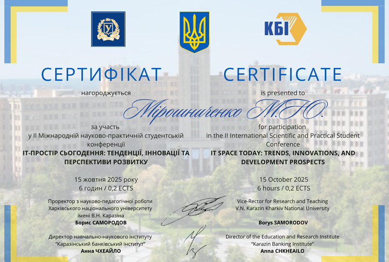• Міжнародна науково-практична студентська конференція «ІТ-простір сьогодення: тенденції, інновації та перспективи розвитку» (15 жовтня 2025 р., м. Харків)