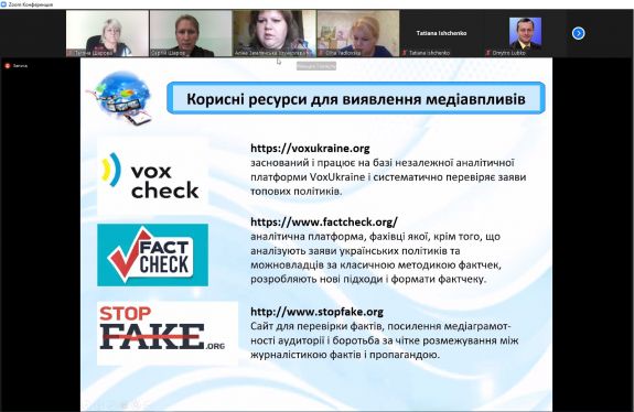10.11.2021. Проведення семінару на тему «Інфомедійна грамотність та розвиток критичного мислення: візуальне сприйняття» провів завідувач кафедри комп’ютерних наук, кандидат педагогічних наук, доцент Сергій ШАРОВ. Під час семінару були розглянуті питання, що стосувалися особливостей медіаграмотності та медіаосвіти, види впливу на особистість та суспільну думку. Учасники семінару ознайомилися з різними видами фейкової інформації (фотографіями, тестовими та відеоматеріалами). Корисною була інформація про ресурси з медіаграмотності, які викривають фейкові новини, а також підвищують рівень медіакультури громадян.