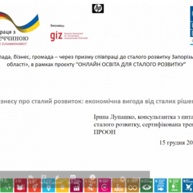 11:10 – 11:45 – “Бізнесу про сталий розвиток: Економічна вигода від сталих рішень” , Ірина Лупашко (м.Київ)