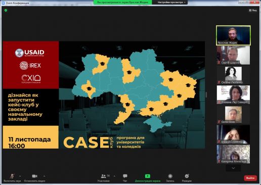 11 листопада 2021 року викладачі кафедри комп’ютерних наук, зокрема завідувач каф. Сергій ШАРОВ, взяли участь у досить цікавому та корисному заході «Кейс-клуб у вашому навчальному закладі: для кого та навіщо», що проходив в онлайн режимі з використанням Zoom. Організатором заходу виступили IREX in Ukraine, Проєкт USAID «Економічна підтримка Східної України» та «Мріємо та діємо».