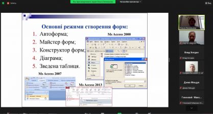 3 жовтня 2021 р. старшим викладачем кафедри комп’ютерних наук Ольгою ЗІНОВ’ЄВОЮ була проведена відкрита лекція для студентів груп 21АГ та 21СВ з дисципліни «Інформаційні технології» на тему «Технології створення та редагування форм в СУБД MS Access». Лекція проходила в онлайн режимі. На лекції були присутні викладачі кафедри комп’ютерних наук.