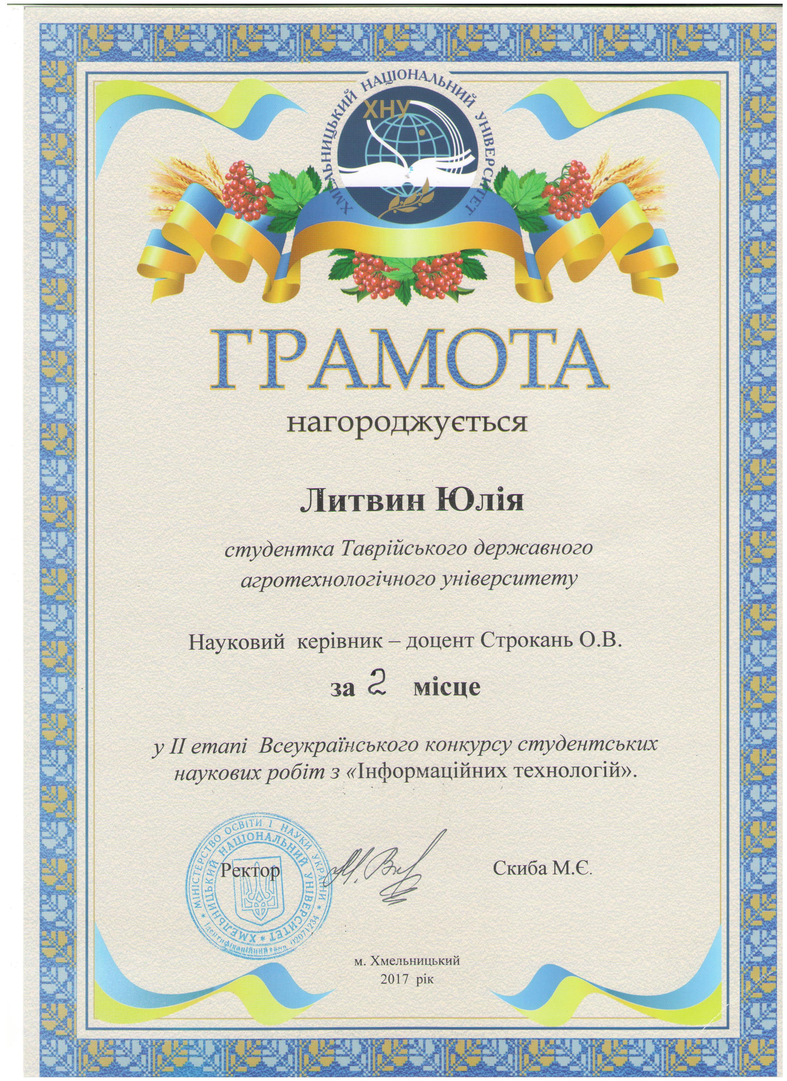 Всеукраїнський конкурс студентських наукових робіт за напрямом «Інформаційні технології».