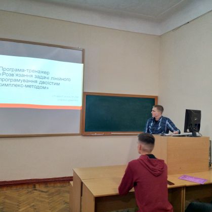 За цей час роботи гуртка розроблена науково-дослідна робота на тему: ««Комп’ютерна навчальна програма–тренажер „Розв’язання задачі лінійного програмування двоїстим симплекс-методом” із застосуванням технології Drag-and-Drop»» студента 41 КН групи Оленича Дмитра Ігоровича.