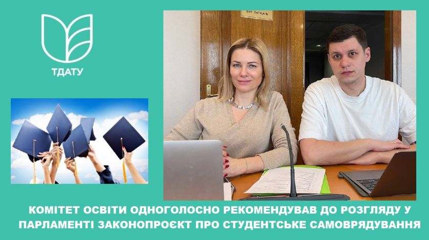 Комітет освіти одноголосно рекомендував до розгляду у Парламенті законопроєкт про студентське самоврядування, повідомила Народна депутатка, голова підкомітету з питань вищої освіти Комітету Верховної Ради України з питань освіти, науки та інновацій, яка вохидть до складу Наглядової ради ТДАТУ – Юлія Гришина.