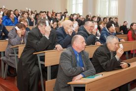 Ректор ТДАТУ д.т.н., професор Володимир Миколайович Кюрчев звернувся до всіх працівників університету з проханням ретельно переглянути та ознайомитися з новою редакцією Статуту, адже він є Конституцією нашого навчального закладу. За нову редакцію Статуту ТДАТУ делегати конференції трудового колективу проголосували одноголосно.