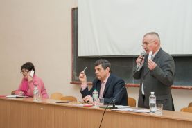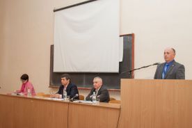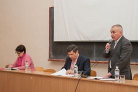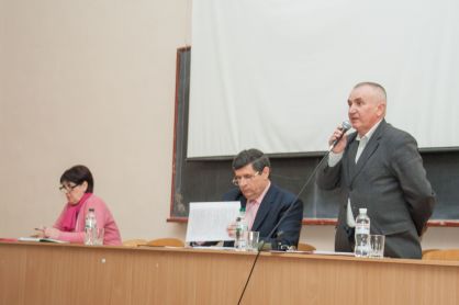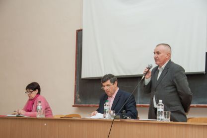 Перед присутніми виступив перший проректор ТДАТУ О.Г. Скляр. Він повідомив, що 13 березня відбулося засідання вченої ради університету, на якому був розглянутий Статут нашого навчального закладу у новій редакції. Це пов’язано з присвоєнням ТДАТУ імені Дмитра Моторного. Статут був сформований згідно методичних рекомендацій для оформлення статутів закладів вищої освіти, що належать до сфери Міністерства освіти і науки України. Документ включає в себе 13 розділів на 56 сторінках. Зокрема: