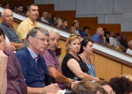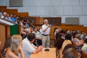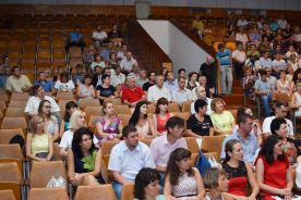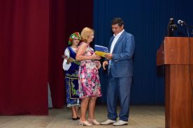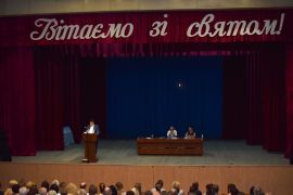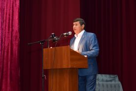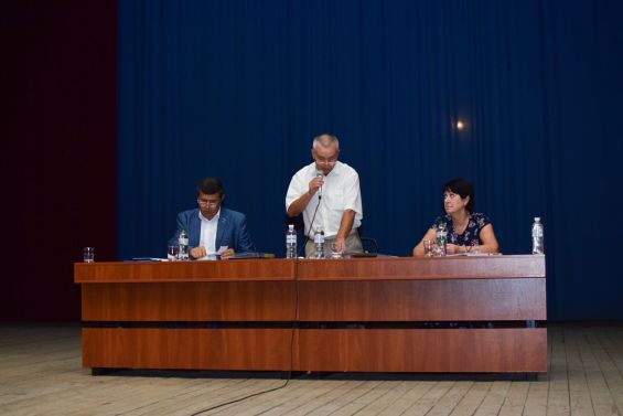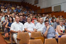 Ректор університету звернувся з вітальним словом до трудового колективу ТДАТУ з нагоди Дня знань, і побажав всім присутнім енергії та наснаги у новому навчальному році. Далі Володимир Миколайович навів статистичні дані щодо абітурієнтів, які вступили до ТДАТУ у 2018 році, проаналізувавши кількість вступників з міста Мелітополя, та сільської місцевості Запорізького регіону. Також, ректор університету наголосив на важливості проведення профорієнтаційної роботи, вдосконалення навчальних програм та ректорських перевірок знань з навчальних дисциплін. У новому навчальному році має покращитись якість дипломних та курсових робіт студентів та підвищитись місце ТДАТУ у рейтингах, а також поглибитись наукова робота, патентна та міжнародна діяльність, співпраця з підприємствами аграрного сектору. Саме ці питання є пріоритетними завданнями колективу університету на 2018-2019 навчальний рік.