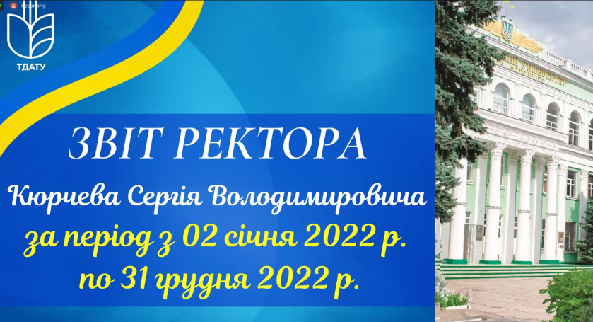 - Звіт ректора ТДАТУ за 2022 рік;