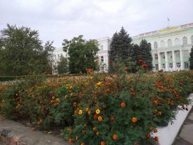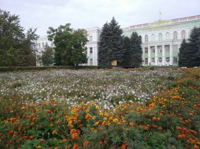 У самому центрі міста, перед головним корпусом Таврійського державного агротехнологічного університету імені Дмитра Моторного перехожих радує величезна клумба з петуній та чорнобривців. Це результат роботи садівників закладу вищої освіти, які вкладають частинку своєї любові до кожної висадженої квітки. Залишатися квітучою клумба буде до перших морозів, а вже навесні наступного року тут розкинеться тюльпанове поле.