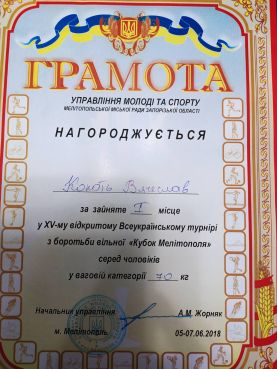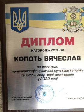 В’ячеслав Копоть – студент факультету енергетики та комп’ютерних технологій ТДАТУ. До навчання ставиться відповідально. Усі свої обов’язки студента виконує сумлінно. В’ячеслав за складом характеру веселий, енергійний, справедливий. До суспільно-громадської роботи ставиться з ініціативою та зацікавленістю. Впродовж усього строку навчання брав участь у різних заходах, які проводилися для студентів. В’ячеслав на професійному рівні займається вільною боротьбою, був призером обласних, регіональних та мирових чемпіонатів з вільної боротьби та сумо. З одногрупниками підтримує дружні стосунки. Має багато друзів серед студентів інших груп. Початок 2021 року для В’ячеслава ознаменувалось важливою подією – він став срібним призером Чемпіонату України з вільної боротьби 2021 року. Зараз триває конкурс на звання кращого спортсмена Запорізької області січня 2021 року, оголошений спортивним сайтом Запорізької області – «Запорізький спорт». Серед претендентів на це народне звання є і В’ячеслав Копоть.