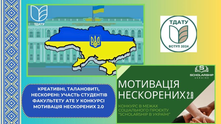 Студенти факультет “Агротехнологій та екології” взяли участь у конкурсі “Мотивація нескорених 2.0” і створили чудовий креативний профорієнтаційний відеоролик про 7 спеціальностей факультету Обирай факультет Агротехнологій та екології ТДАТУ – навчайся – ти потрібен Україні!