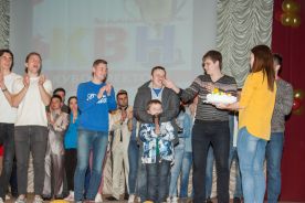 Наприкінці гри КВНщики привітали з десятилітнім ювілеєм команду КВН факультету економіки та бізнесу «Хорошая команда». Великий святковий торт отримали гравці команди минулих років, які з хвилюванням вишли на рідну сцену.