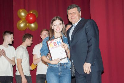 За традицією було відзначено КВНщиків – випускників: Мєшкову Марію (капітана команди «Энергия») та Водяницького Дмитра (капітана команди «5 корпус»).