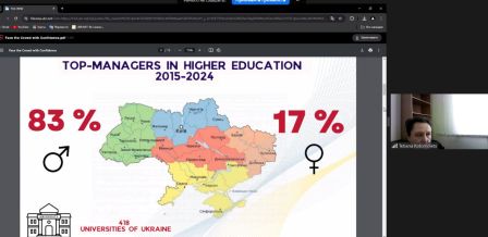 Доповідь зосереджувалась на важливості гендерної рівності у сфері вищої освіти, яка наразі є одним із ключових викликів як в Україні, так і за її межами.