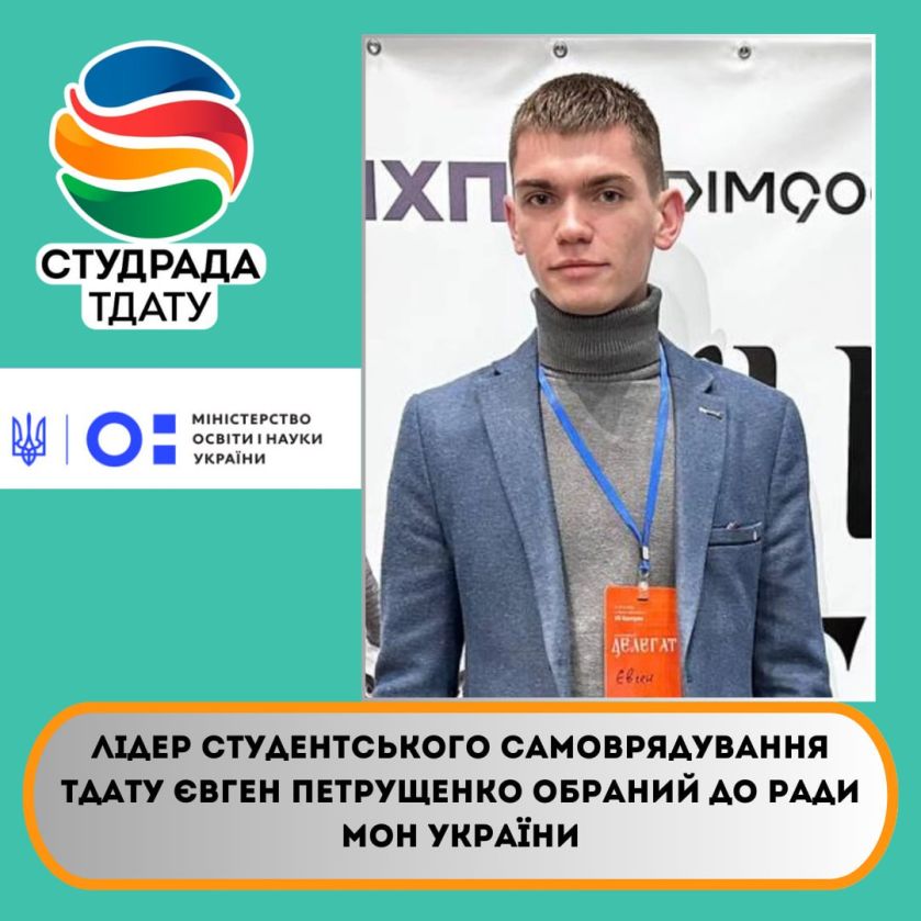 Лідер студентського самоврядування ТДАТУ Євген Петрущенко обраний до Ради з питань співпраці з органами студентського самоврядування ЗВО при Міністерстві освіти і науки України.