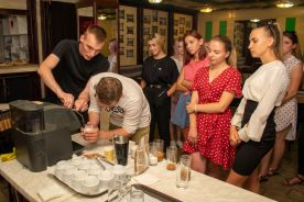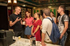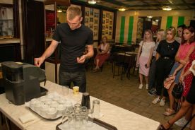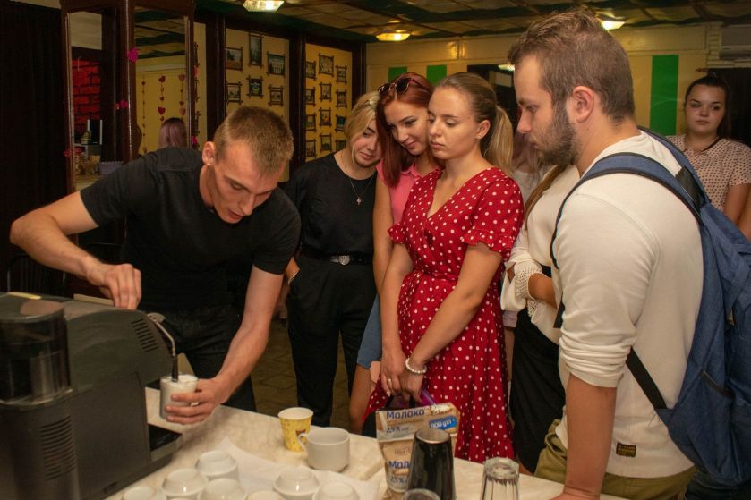 Олександр ознайомив присутніх з особливостями приготування «ідеального капучіно», розкрив секрети мистецтва розпису капучіно, роз’яснив правила роботи каво-машини, навчив готувати смачні прохолоджувальні коктейлі. Учасники майстер-класу із задоволенням спостерігали та брали участь в приготуванні та оформленні напоїв. Найприємнішим моментом стала дегустація приготованих коктейлів.