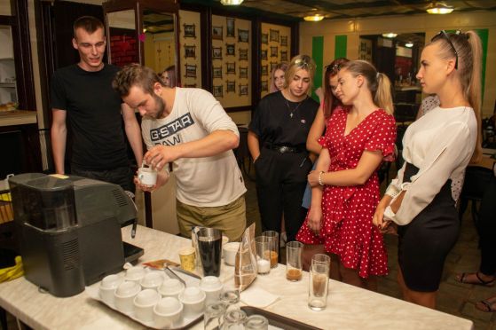 В навчальному кафе ТДАТУ ім. Дмитра Моторного для першокурсників спеціальності «Готельно-ресторанна справа» було влаштовано інтерактивний майстер-клас з приготування капучіно та кавових коктейлів. Майстер-клас проводив Олександр Куріпка – студент 4 курсу спеціальності «Харчові технології», професійний бариста 3B Cafe (м. Київ), який навчається і працює за дуальною системою освіти.