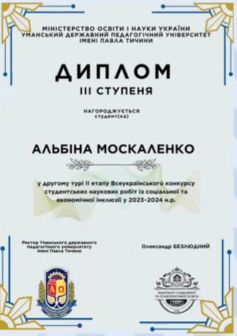 За результатами конкурсу, Альбіна Москаленко отримала заслужений диплом ІІІ ступеня. Це визнання не лише підтверджує високий рівень її наукової роботи, а й ставить її на високу сходинку в області соціальної та економічної інклюзії.