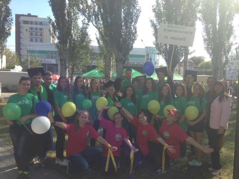 Звичайно, не обійшлося без молоді нашого факультету. 18 студентів йшли в урочистому параді. Хлопці гордо несли в руках  прапор АТЕ, а дівчата, одягнувшись у факультетські футболки, підкоряли своєю посмішкою.
