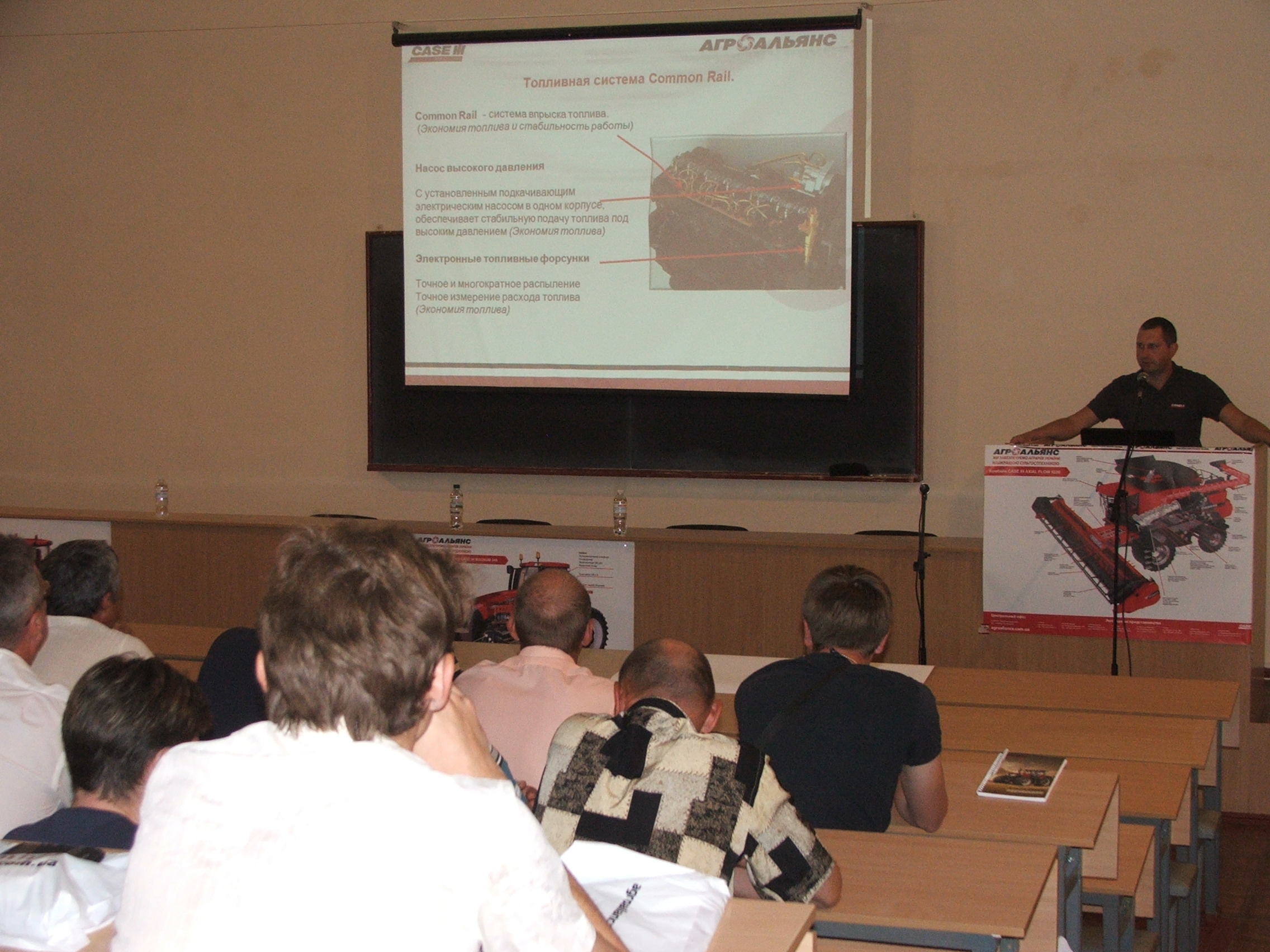 Менеджери та сервісні інженери ознайомили учасників семінару з компанією, представили нову серію техніки Axial Flow – 6130, надали необхідну теоретичну інформацію, провели навчальний тренінг (майстер-клас) з демонстрацією сучасного зернозбирального комбайну.