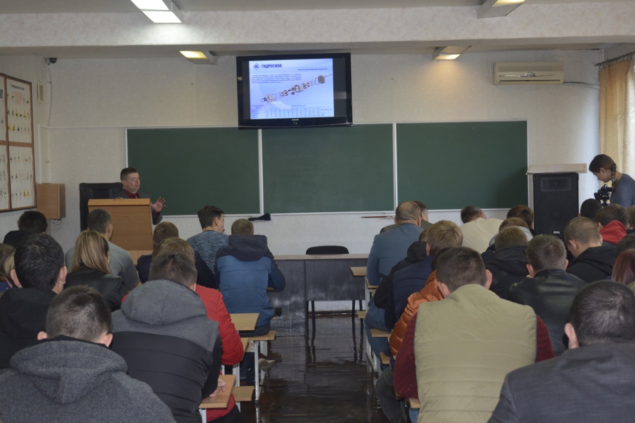 В рамках співпраці промислових підприємств з закладами вищої освіти, які готують фахівців для аграрного сектора, та з метою впровадження дуального навчання студентів, 30 жовтня 2019 року на кафедрі Мехатронні системи та транспортні технології Таврійського державного агротехнологічного університету імені Дмитра Моторного відбулася урочиста зустріч студентів механіко-технологічного факультету з представниками ПАО «Торговий Дім Гідросила» м. Кропивницький – директором з маркетингу Демець Ю.Г. та менеджером з маркетингу Куніциним В.В. Вони представили цікаву презентацію продукції, що випускається під ТМ «Гідросила» та приклади її застосування на сучасних мобільних машинах. Це наступний крок до відкриття навчальної лабораторії об’ємних гідромашин і гідроагрегатів кафедри МСТТ, яка дозволить за допомогою наочних макетів та зразків демонструвати студентам особливості сучасних гідромашин, що випускаються підприємствами «Гідросила ГРУП». Також студенти та викладачі зацікавились можливістю проходження практики, дуального навчання та стажування на підприємстві такого рівня.