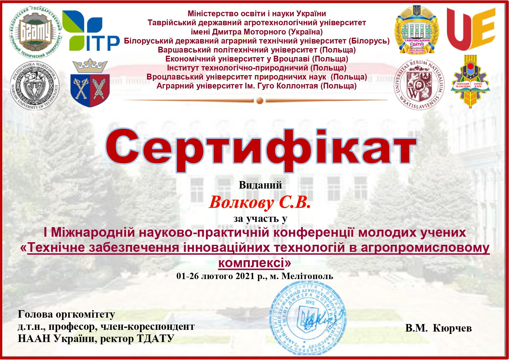 I МІЖНАРОДНА НАУКОВО-ПРАКТИЧНА КОНФЕРЕНЦІЯ МОЛОДИХ УЧЕНИХ «ТЕХНІЧНЕ ЗАБЕЗПЕЧЕННЯ ІННОВАЦІЙНИХ ТЕХНОЛОГІЙ В АГРОПРОМИСЛОВОМУ КОМПЛЕКСІ»