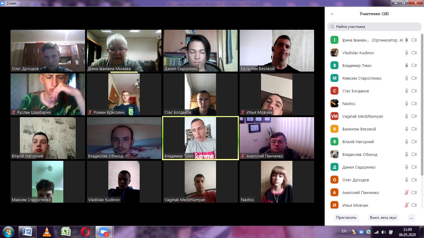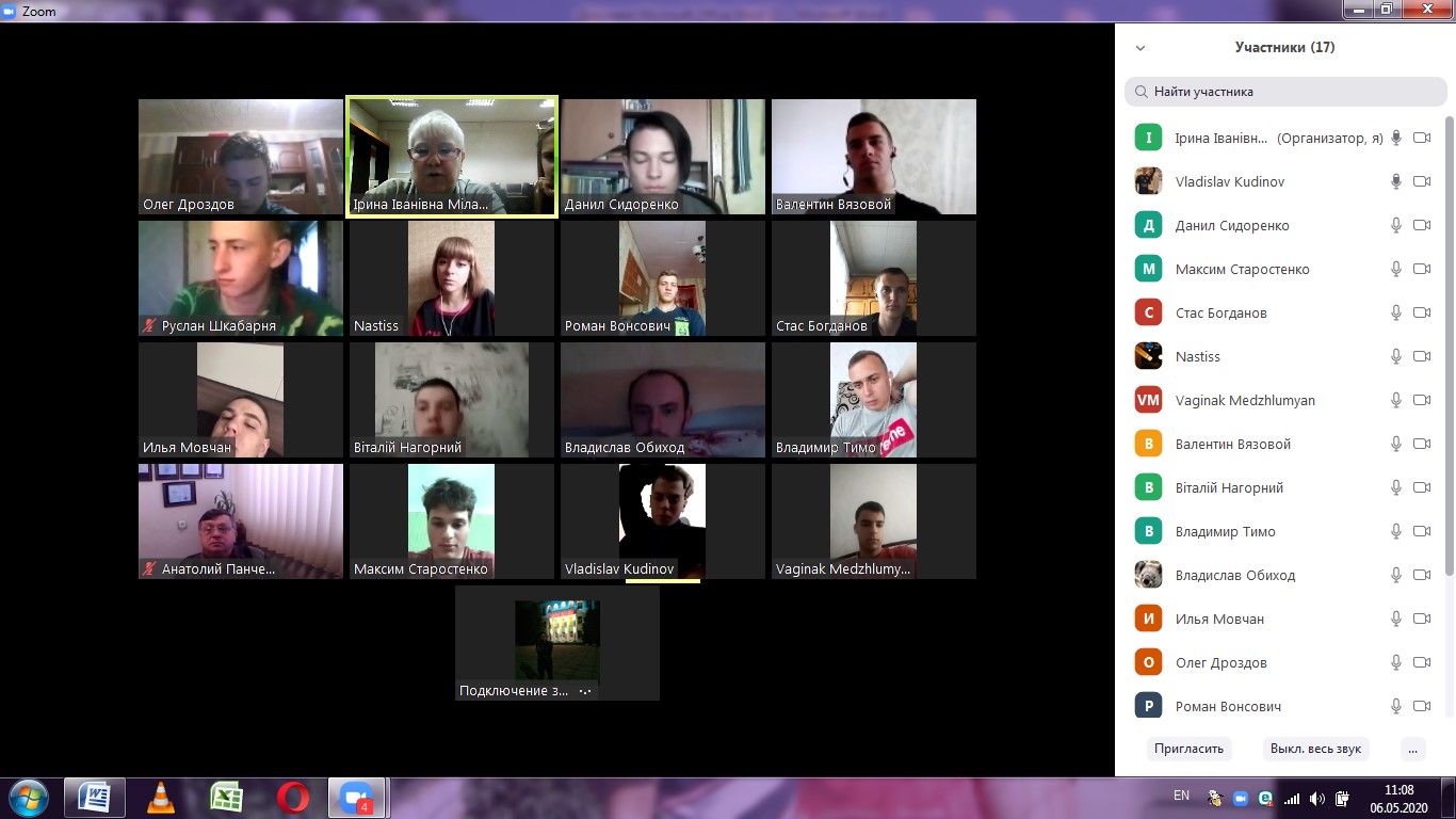 6 травня 2020 року на кафедрі МСТТ пройшла кураторська година у 21 АІ групи (куратор Ірина Мілаєва) в режимі ZOOM-конференції. На зв’язку зі студентами були завідувач кафедри МСТТ Анатолій Панченко та заступник декану Олександр Шокарев.