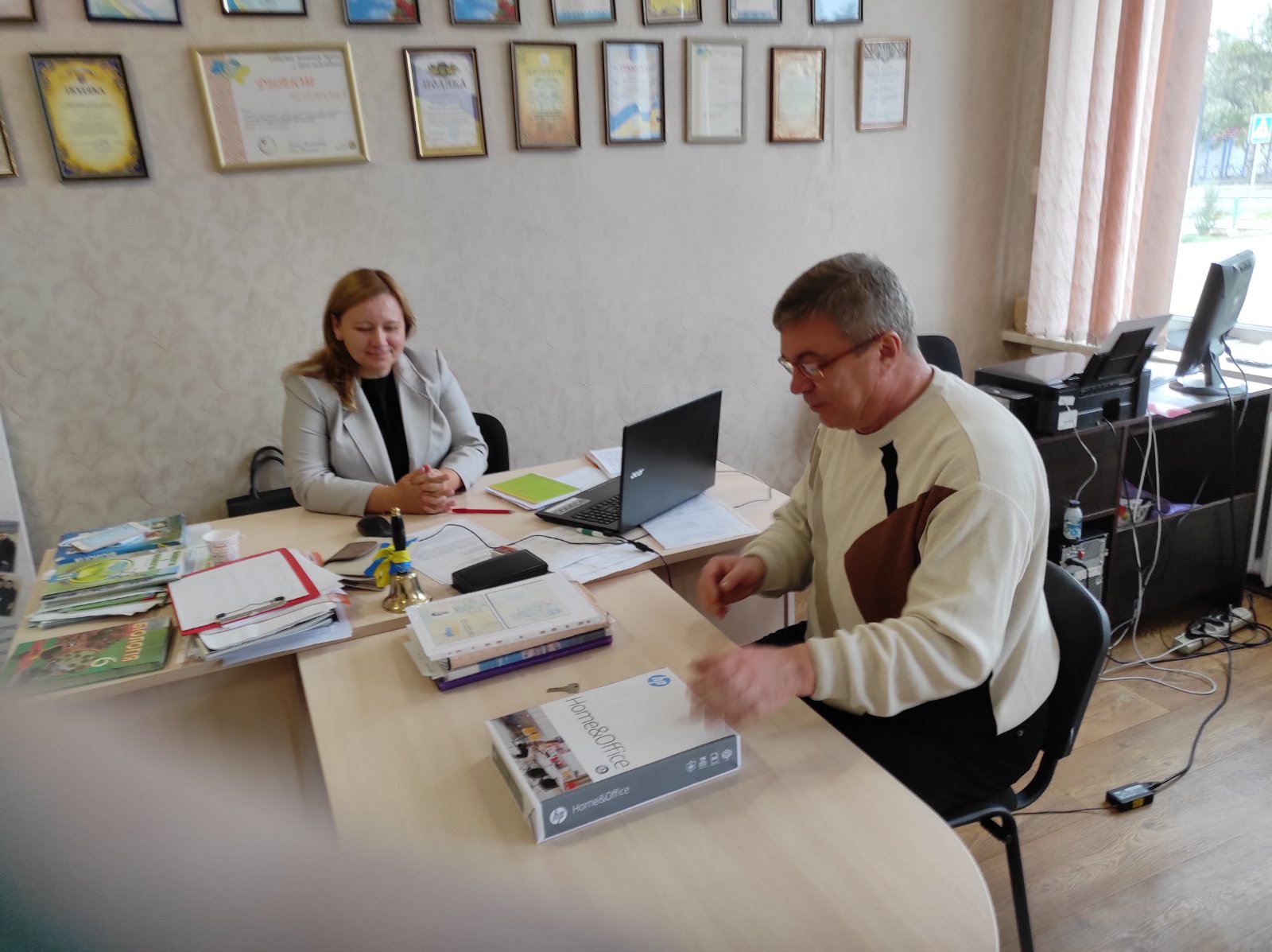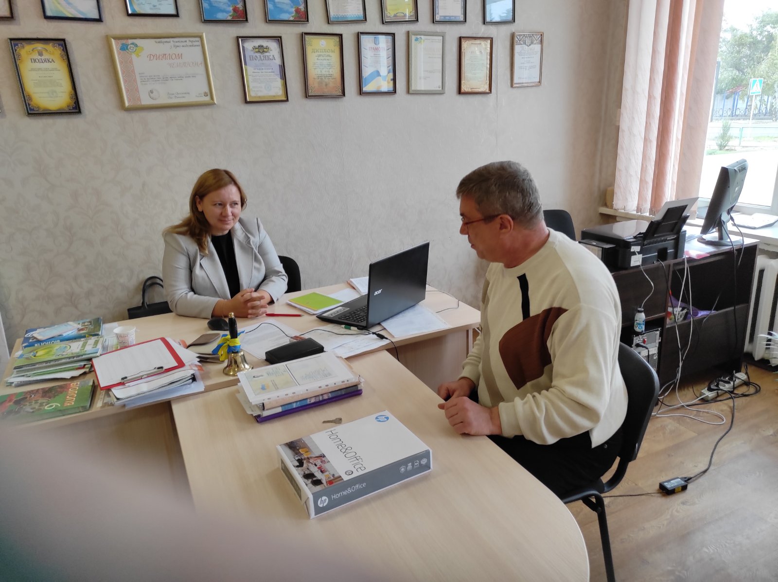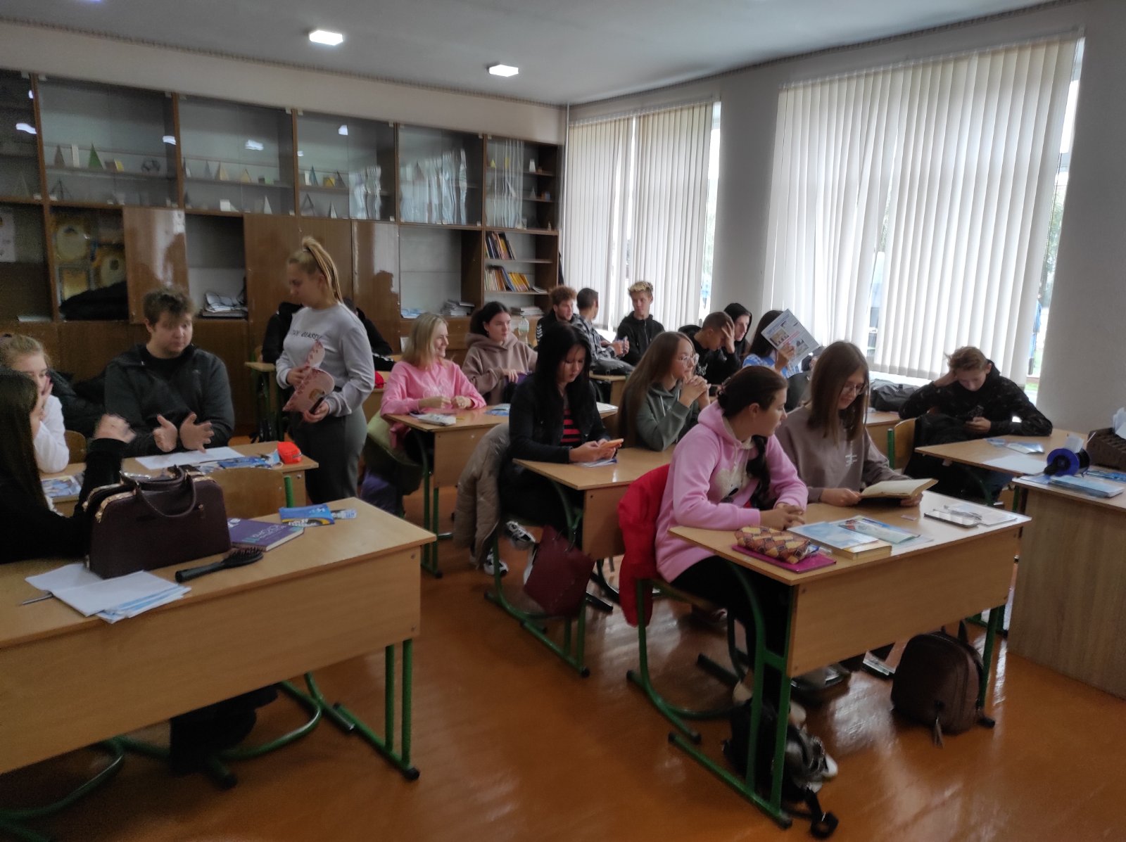 Була організована зустріч з учнями випускного класу. На зустрічі були присутні директор школи Інна Шевченко та класний керівник.