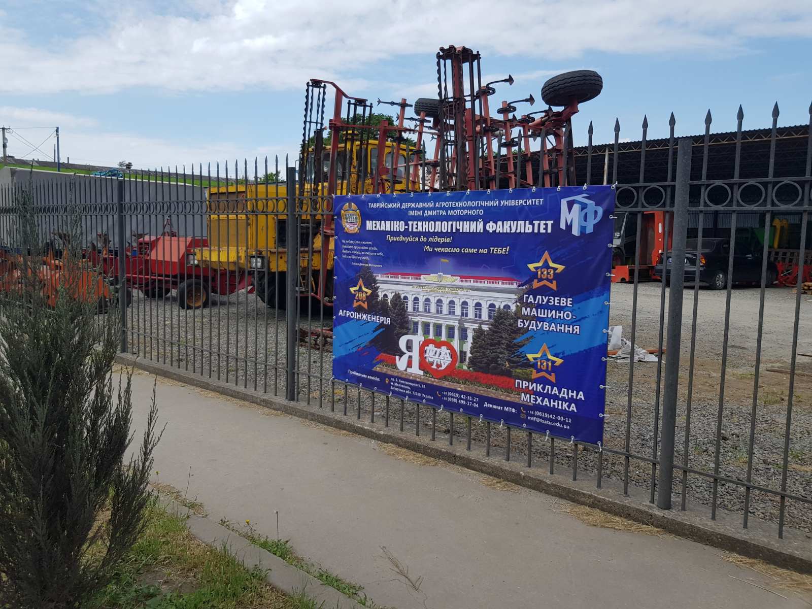 Силами кафедри було виготовлено та встановлено два рекламних банера з запрошенням вступати до ТДАТУ та інформацією про спеціальності механіко-технологічного факультету: «Агроінженерія», «Галузеве машинобудування» та «Прикладна механіка».